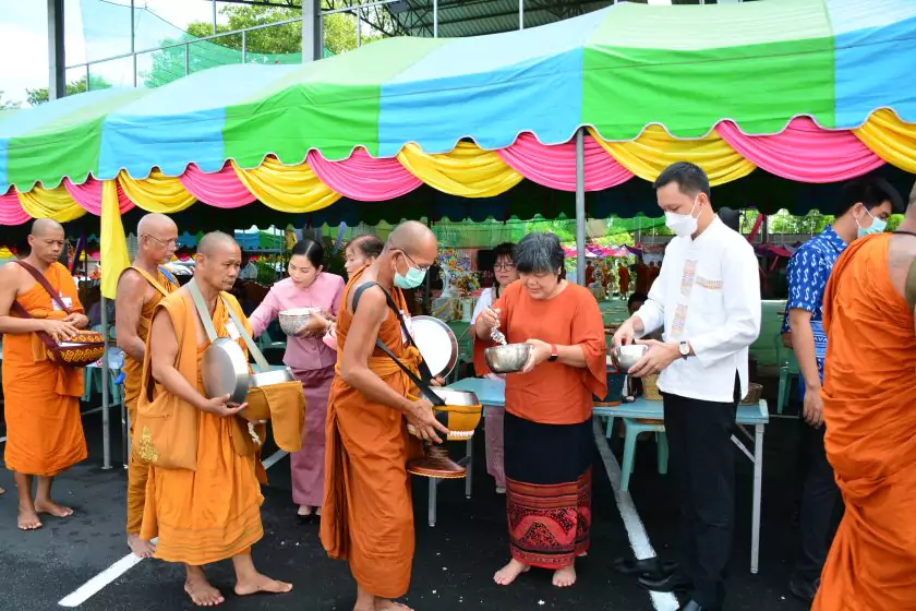 วันพฤหัสบดีที่ ๘ มิถุนายน ๒๕๖๖ เวลา ๐๘.๐๐ น. ดร.พัฒนาพร ไทยพิบูลย์ รองศึกษาธิการจังหวัดสุพรรณบุรี นำคณะข้าราชการในสังกัด ร่วมพิธีทำบุญตักบาตร (อาหารคาว-หวาน) งานปริวาสกรรมพระคณาจารย์ พระสงฆ์จากทั่วประเทศ จำนวน ๓๐๐ รูป ที่มีพรรษา ๑๐ พรรษาขึ้นไป ณ หมู่บ้านอนุรักษ์ควายไทย ตำบลวังน้ำซับ อำเภอศรีประจันต์ จังหวัดสุพรรณบุรี โดยมี นายธีรยุทธ์ จันทร์ดิษฐวงษ์ รองผู้ว่าราชการจังหวัดสุพรรณบุรี เป็นประธานในพิธี