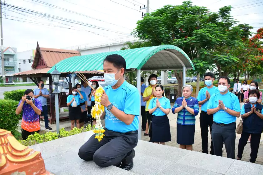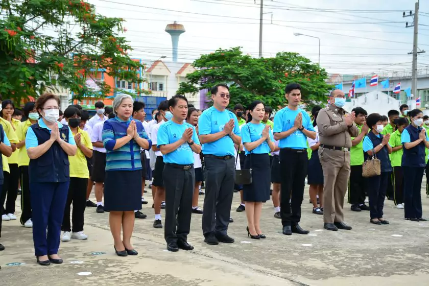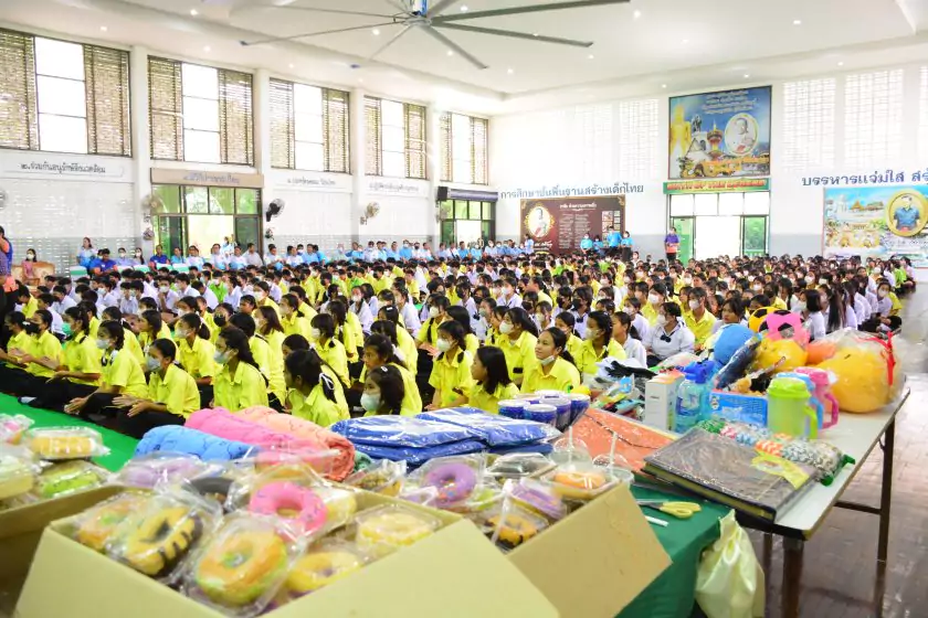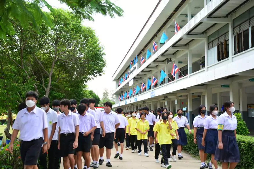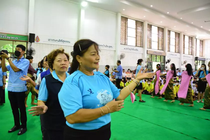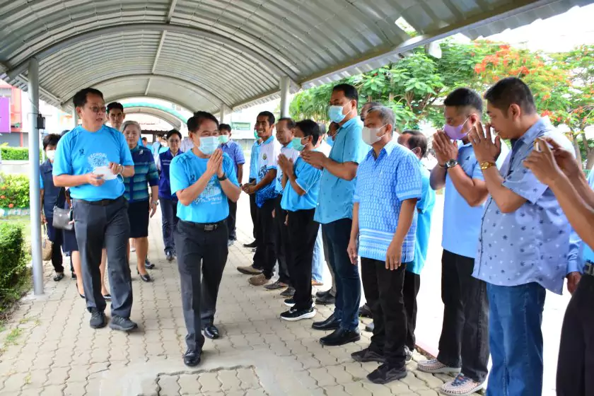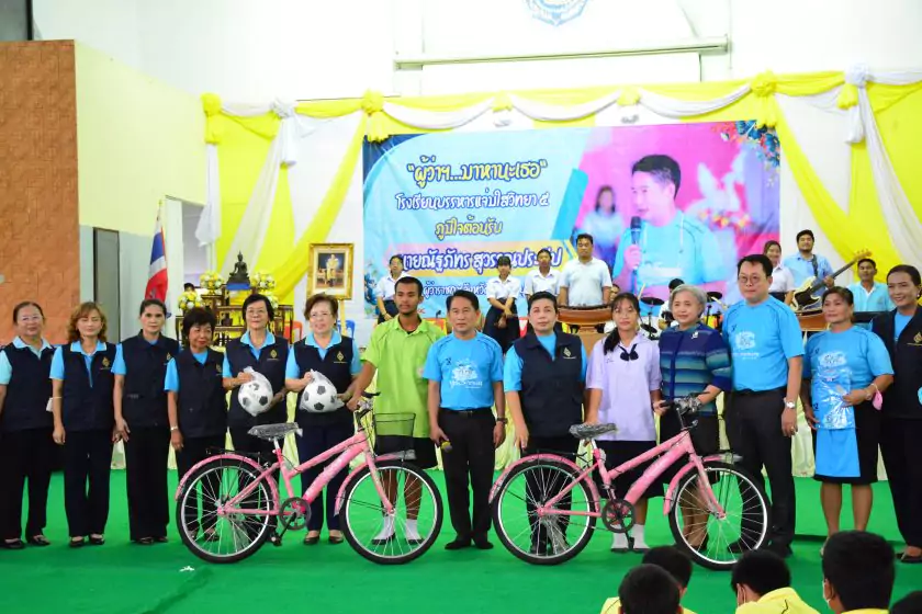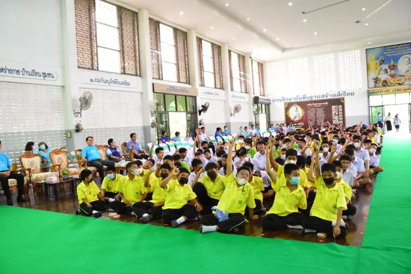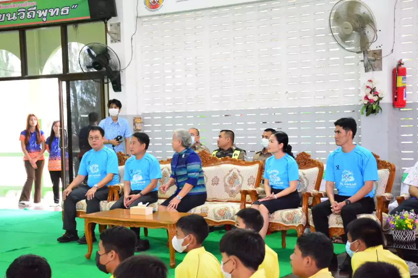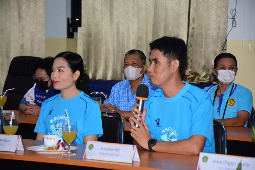 วันศุกร์ที่ ๔ สิงหาคม ๒๕๖๖ กิจกรรม “ผู้ว่าฯ…มาหานะเธอ” ครั้งที่ ๕๐ ตามโครงการผู้ว่าราชการจังหวัดกับการศึกษาสุพรรณบุรี ณ โรงเรียนบรรหารแจ่มใสวิทยา ๕ อำเภอสองพี่น้อง สังกัดสำนักงานเขตพื้นที่การศึกษามัธยมศึกษาสุพรรณบุรี นายณัฐภัทร สุวรรณประทีป ผู้ว่าราชการจังหวัดสุพรรณบุรี พร้อมด้วยเหล่ากาชาดจังหวัดสุพรรณบุรี นายอำเภอสองพี่น้อง และผู้นำชุมชน ผู้บริหารและข้าราชการสำนักงานเขตพื้นที่การศึกษามัธยมศึกษาสุพรรณบุรี ดร.พัฒนาพร ไทยพิบูลย์ รองศึกษาธิการจังหวัดสุพรรณบุรี และเจ้าหน้าที่สำนักงานศึกษาธิการจังหวัดสุพรรณบุรี ทำหน้าที่เลขานุการ โดยได้ร่วมเคารพธงชาติ สวดมนต์ ถาม-ตอบปัญหา แจกของรางวัลเพื่อส่งเสริมความรู้ ความเข้าใจเกี่ยวกับสถาบันหลักของชาติ ฝากข้อคิดในการพัฒนาโรงเรียนด้วยหลัก บ-ว-ร พัฒนานักเรียนโดยใช้โครงการเยาวชนคนดีศรีสุพรรณ ส่งเสริม และขยายผลไปสู่ครอบครัวคุณธรรม ท้ายสุด ผู้ว่าฯ ขอสัญญาจากนักเรียน ๒ ข้อ คือ ไม่ยุ่งเกี่ยวกับยาเสพติด และ ขอให้เป็นเด็กดี ของพ่อแม่ ไม่ทำให้พ่อแม่เสียใจ