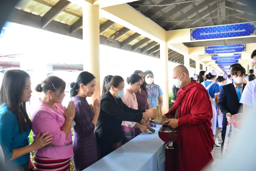วันพฤหัสบดีที่ ๑๙ ตุลาคม ๒๕๖๖ เวลา ๐๗.๓๐ น. นางสำเนา พงษ์อารีย์ ศึกษาธิการจังหวัดสุพรรณบุรี มอบหมายให้ ดร.พัฒนาพร ไทยพิบูลย์ รองศึกษาธิการจังหวัดสุพรรณบุรี นำคณะข้าราชการร่วมพิธีทำบุญตักบาตรข้าวสารอาหารแห้ง และพิธีวางพานพุ่มดอกไม้สดถวายราชสักการะสมเด็จพระศรีนครินทราบรมราชชนนี เนื่องในวันพยาบาลแห่งชาติ ณ วิทยาลัยพยาบาลบรมราชชนนี สุพรรณบุรี โดยมี นายณัฐภัทร สุวรรณประทีป ผู้ว่าราชการจังหวัดสุพรรณบุรี เป็นประธานในพิธี