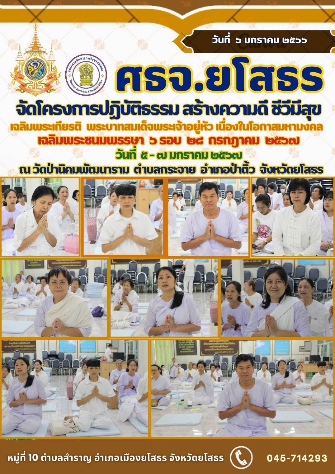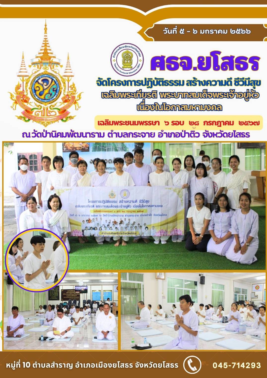 ศธจ.ยโสธร จัดโครงการปฏิบัติธรรม สร้างความดี ชีวีมีสุข เฉลิมพระเกียรติ พระบาทสมเด็จพระเจ้าอยู่หัว เนื่องในโอกาสมหามงคล เฉลิมพระชนมพรรษา ๖ รอบ ๒๘ กรกฎาคม ๒๕๖๗