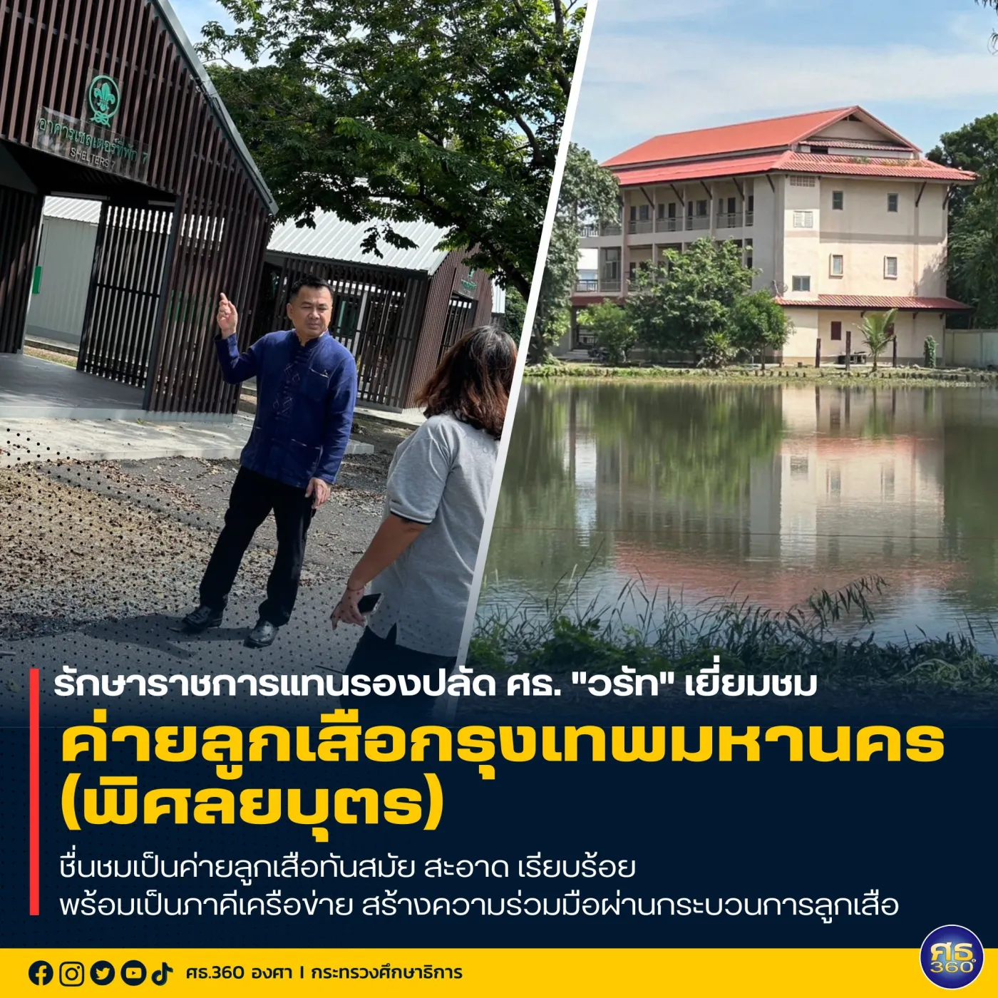 รักษาราชการแทนรองปลัด ศธ. “วรัท” เยี่ยมชมค่ายลูกเสือกรุงเทพมหานคร (พิศลยบุตร) สังกัดสำนักการศึกษา กทม. ชื่นชมเป็นค่ายลูกเสือทันสมัย สะอาด เรียบร้อย พร้อมร่วมเป็นภาคีเครือข่าย สร้างความร่วมมือพัฒนาเด็ก-เยาวชน ผ่านกระบวนการลูกเสือ