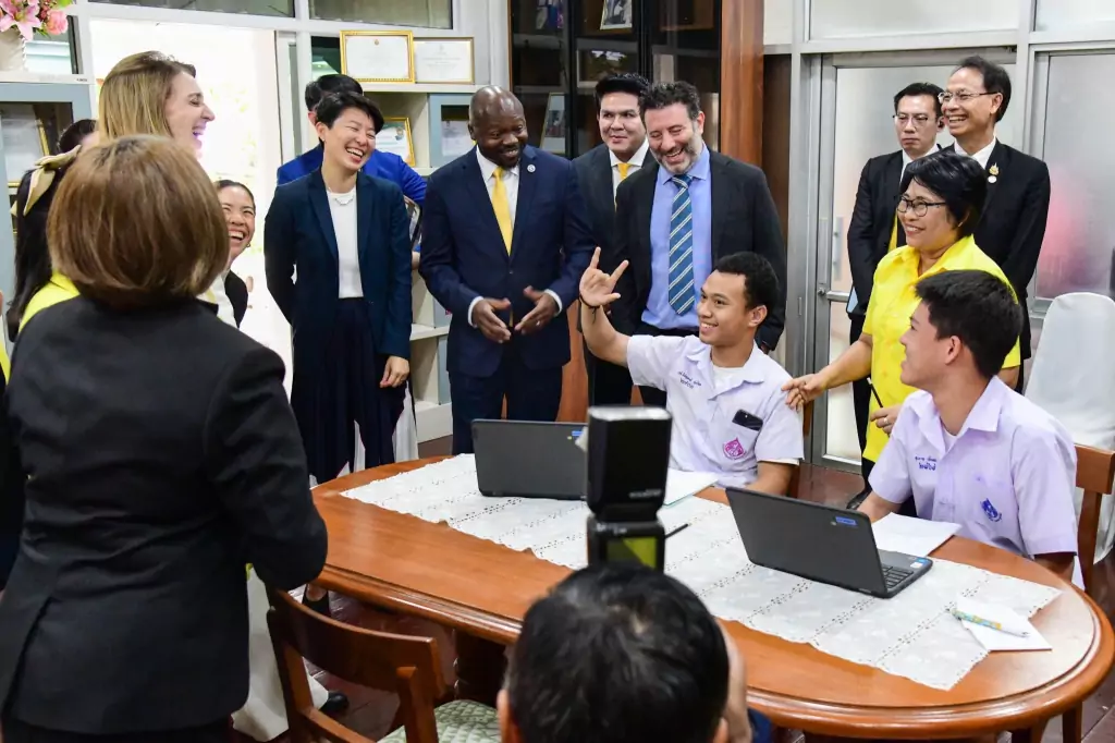 ขอบคุณที่ให้โอกาสได้เข้ามามีบทบาทในด้านการศึกษา ถือเป็นความรับผิดชอบในการส่งต่อสิ่งดีสำหรับเด็กสอดคล้องนโยบาย “จับมือไว้ แล้วไปด้วยกัน” มั่นใจว่าการลงทุนด้านการศึกษาจะช่วยส่งผลให้ผู้เรียนและครูมีทักษะการใช้อุปกรณ์เทคโนโลยีที่เปลี่ยนแปลงอย่างรวดเร็ว ควาดหวังว่าจะได้ร่วมมือกับประเทศไทยวางรากฐานระบบการศึกษาในระยะยาวให้ยั่งยืนต่อไป
