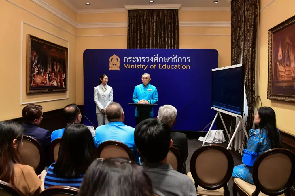 กระทรวงศึกษาธิการ เมื่อวันพุธที่ 7 สิงหาคม 2567 – พลตำรวจเอก เพิ่มพูน ชิดชอบ รัฐมนตรีว่าการกระทรวงศึกษาธิการ (รมว.ศธ.) แถลงข่าวโครงการพัฒนาศักยภาพครูและบุคลากรทางการศึกษา ผ่านระบบออนไลน์หลักสูตร“Inner Power Teachers” โดยนายสิริพงศ์ อังคสกุลเกียรติ ผู้ช่วย รมต.ศธ., นายสุเทพ แก่งสันเทียะ ปลัด ศธ., ว่าที่ร้อยตรี ธนุ วงษ์จินดา เลขาธิการ กพฐ., นายยศพล เวณุโกเศศ เลขาธิการ กอศ. และ ครูเงาะ รสสุคนธ์ กองเกตุ เข้าร่วม