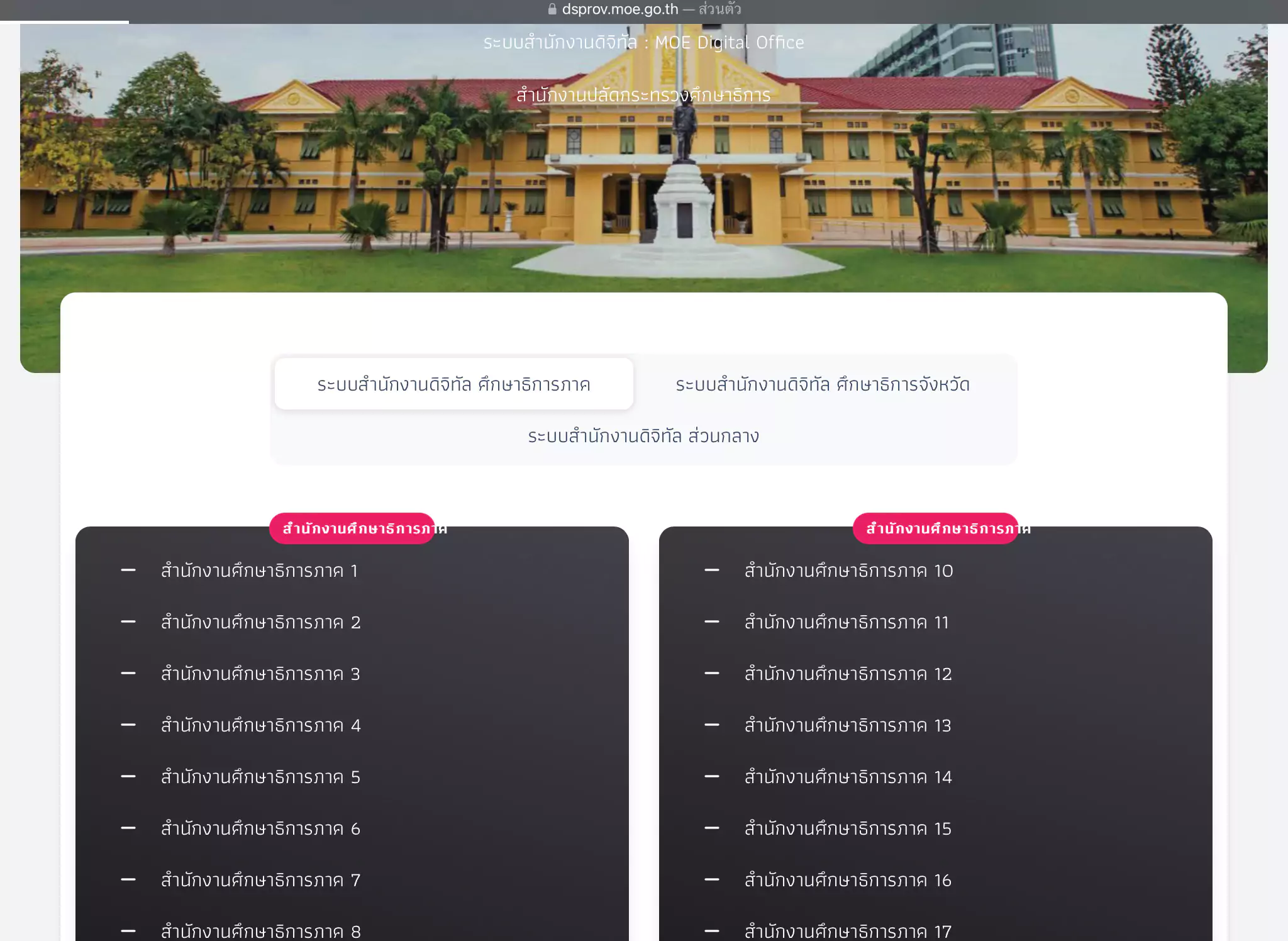 ระบบสำนักงานดิจิทัล (MOE Digital Office : MOE DO) dsprov.moe.go.th คือ ระบบการบริหารจัดการที่วางระบบให้สามารถเชื่อมโยงข้อมูลถึงกันของทุกหน่วยงานในสังกัด สป.ศธ. ทั้งส่วนกลางและส่วนกลางในภูมิภาค ซึ่งได้มีการทดสอบระบบการรับ-ส่งเอกสาร และการดำเนินงานระหว่างวันที่ 1 – 9 กรกฎาคม 2566 และจะเริ่มใช้งานจริง ในวันจันทร์ที่ 10 กรกฎาคม 2566 พร้อมกันทุกหน่วยงานในสังกัด สป.ศธ.