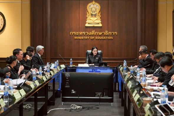 กระทรวงศึกษาธิการ – 12 พฤศจิกายน 2568 / ศาสตราจารย์นฤมล ภิญโญสินวัฒน์ รัฐมนตรีว่าการกระทรวงศึกษาธิการ ให้การต้อนรับคณะนักฟุตบอลและผู้ฝึกสอนจากโรงเรียนหมอนทองวิทยา อำเภอบางน้ำเปรี้ยว จังหวัดฉะเชิงเทรา เจ้าของฉายา “เซลติกแห่งบางน้ำเปรี้ยว” รองแชมป์ฟุตบอลนักเรียน 7 คน กีฬา 7 HD 2025 (กีฬา 7 สี) นำโดย นายสกล เกลี้ยงประเสริฐ หัวหน้าผู้ฝึกสอน พร้อมคณะครูและนักเรียน ณ ห้องประชุมราชวัลลภ อาคารราชวัลลภ กระทรวงศึกษาธิการ