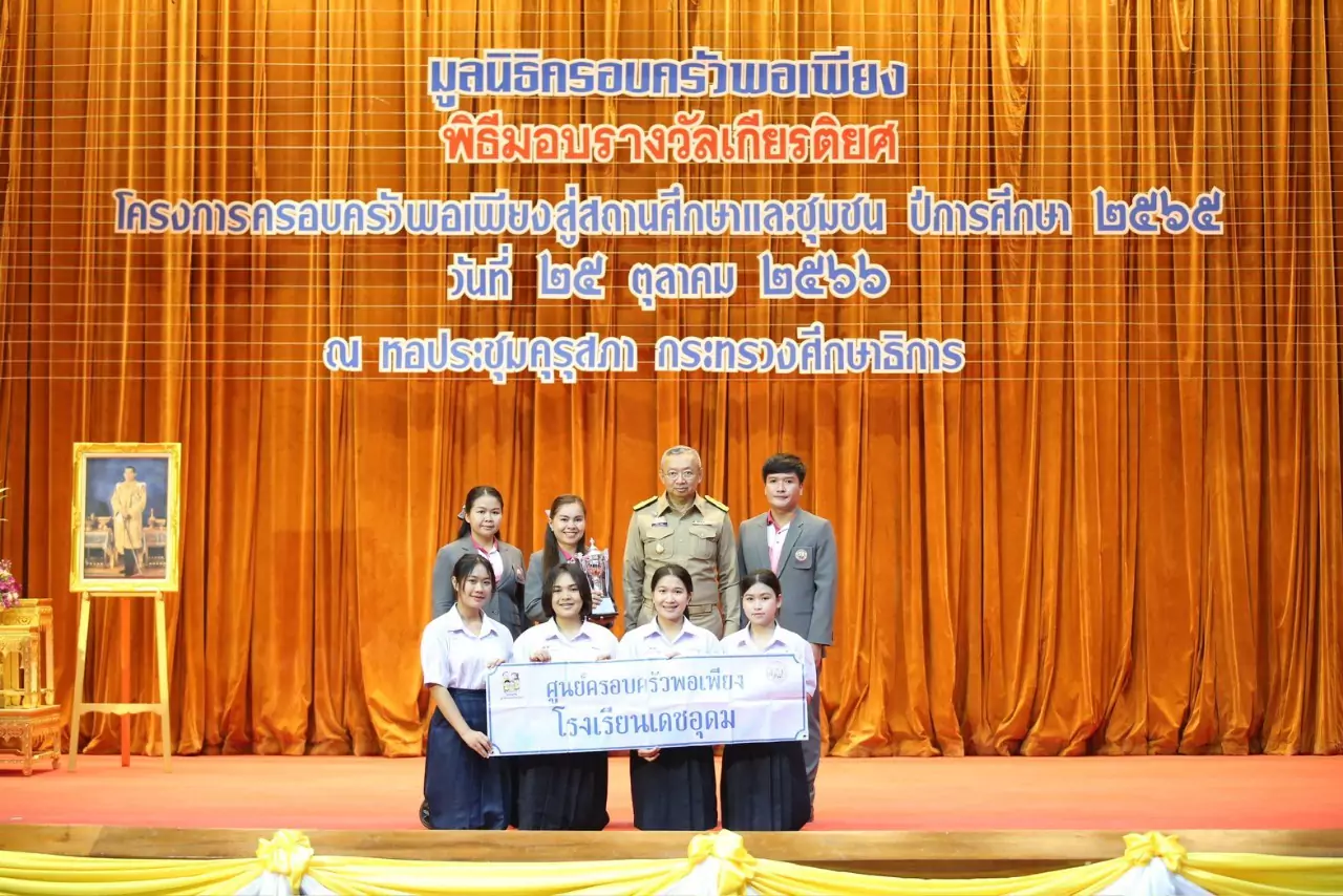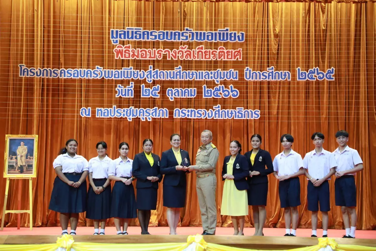 พลตำรวจเอก เพิ่มพูน ชิดชอบ รัฐมนตรีว่าการกระทรวงศึกษาธิการ (รมว.ศธ.) เป็นประธานในพิธีมอบรางวัลเกียรติยศ โครงการครอบครัวพอเพียงสู่สถานศึกษาและชุมชน ประจำปีการศึกษา 2565 เมื่อเร็ว ๆ นี้ ณ หอประชุมคุรุสภา กระทรวงศึกษาธิการ โดยมี ว่าที่ร้อยตรี ธนุ วงษ์จินดา เลขาธิการคณะกรรมการการศึกษาขั้นพื้นฐาน ดร.เบญจลักษณ์ น้ำฟ้า รองประธานกรรมการมูลนิธิครอบครัวพอเพียง คณะผู้บริหารโรงเรียน ครู และนักเรียน เข้าร่วม