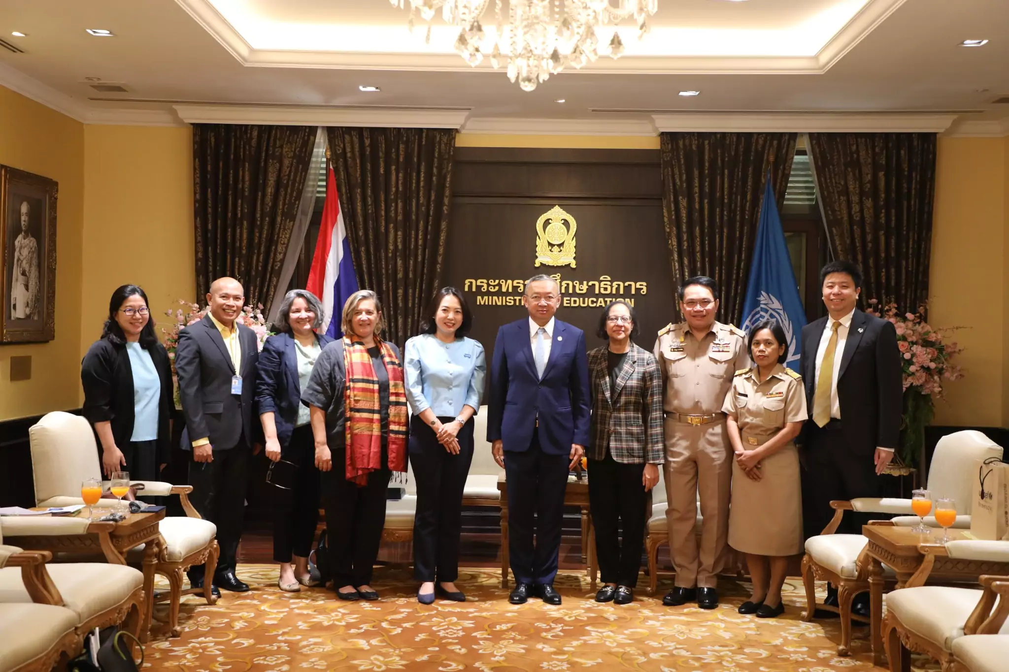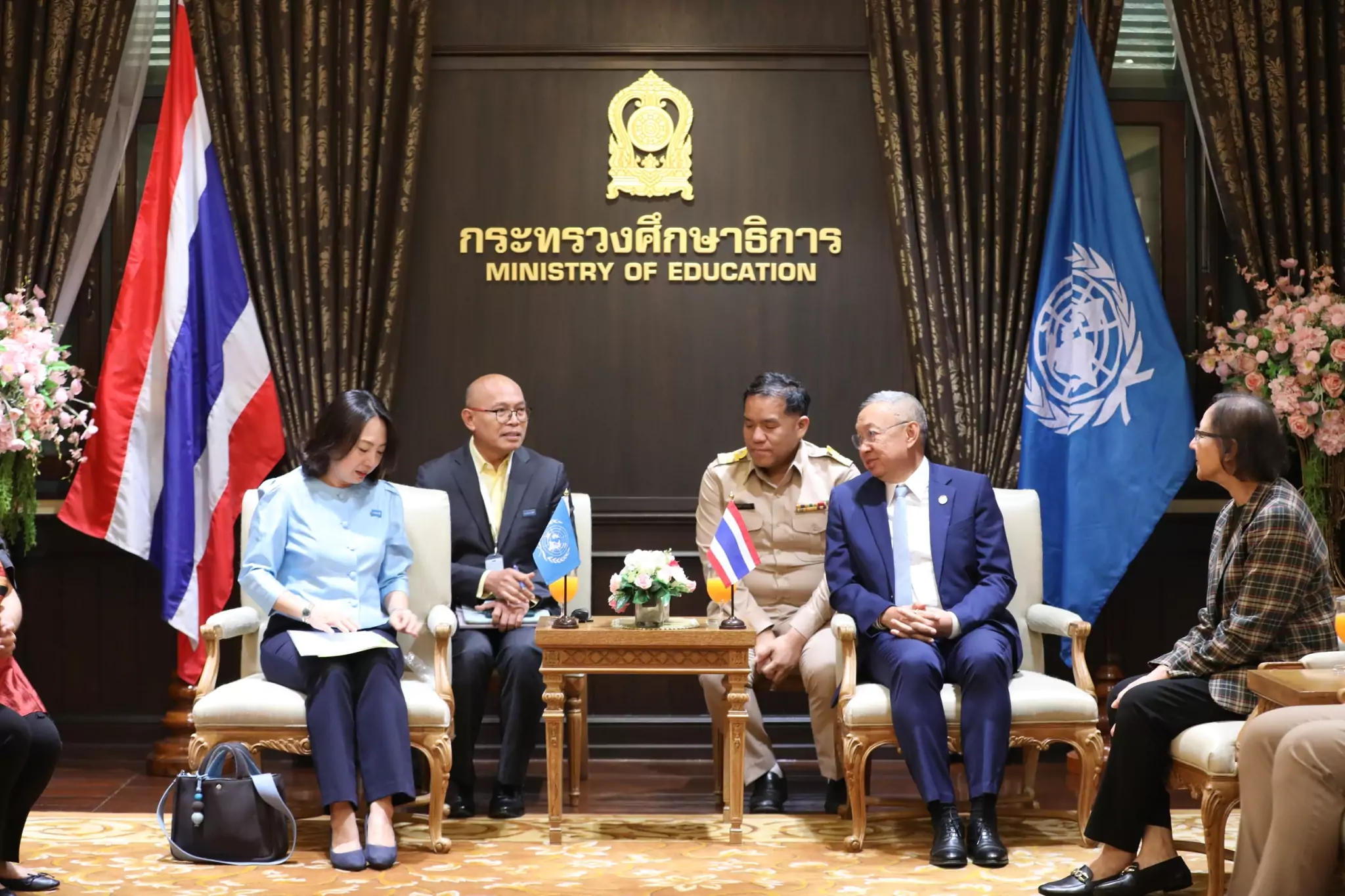 20 พฤศจิกายน 2566 / พลตำรวจเอก เพิ่มพูน ชิดชอบ รัฐมนตรีว่าการกระทรวงศึกษาธิการ ให้การต้อนรับ นางคยองซอน คิม (Ms. Kyungsun Kim) ผู้แทนองค์การยูนิเซฟประจําประเทศไทยและคณะ โดยมีนายพิเชฐ โพธิ์ภักดี รองปลัดกระทรวงศึกษาธิการและผู้ที่เกี่ยวข้อง เข้าร่วม ณ ห้องดํารงราชานุภาพ กระทรวงศึกษาธิการ