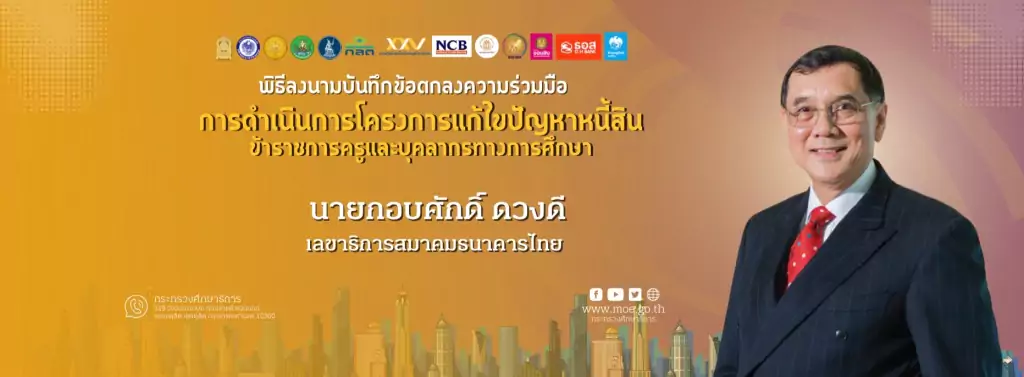 สมาคมธนาคารไทย และสมาคมสถาบันการเงินของรัฐ บูรณาการและประสานความร่วมมือกับ ศธ. ในการจัดกิจกรรมตามโครงการแก้ไขปัญหาหนี้สินครูและบุคลากรทางการศึกษา