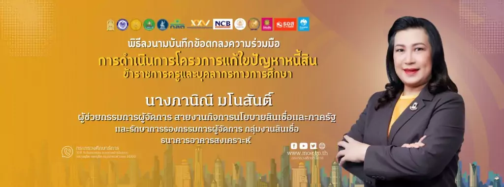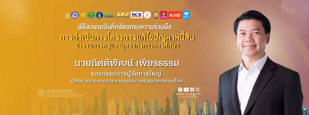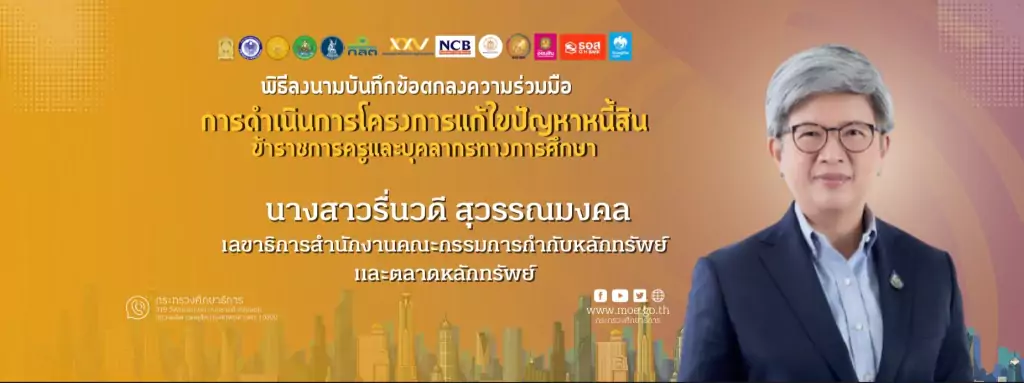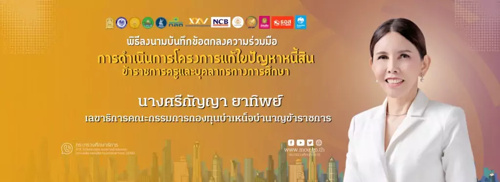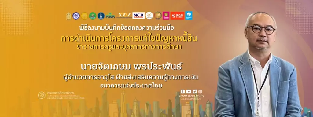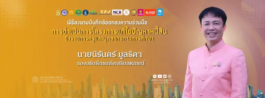 โดยจะดึงจุดแข็งของแต่ละหน่วยงานเข้าช่วยเหลือจัดการแก้ไขหนี้และการอบรมความรู้ปลูกฝังวินัยการเงิน พร้อมให้สิทธิพิเศษต่างๆ สำหรับการชำระหนี้ การกู้ยืม การออม และการลงทุน ซึ่งการได้รับโอกาสความร่วมมือในครั้งนี้นับเป็นการบูรณาการแก้ไขร่วมกันที่ยิ่งใหญ่ เพื่อช่วยเหลือให้ครูและบุคลากรทางการศึกษามีคุณภาพชีวิตที่ดี จึงอยากเชิญชวนครูที่มีหนี้เข้าร่วมโครงการเพื่อช่วยหาทางออก และแนวทางการปรับโครงสร้างหนี้ที่เหมาะสมกับแต่ละราย โดย ศธ.และหน่วยงานพันธมิตรพร้อมให้ความช่วยเหลืออย่างเต็มที่”