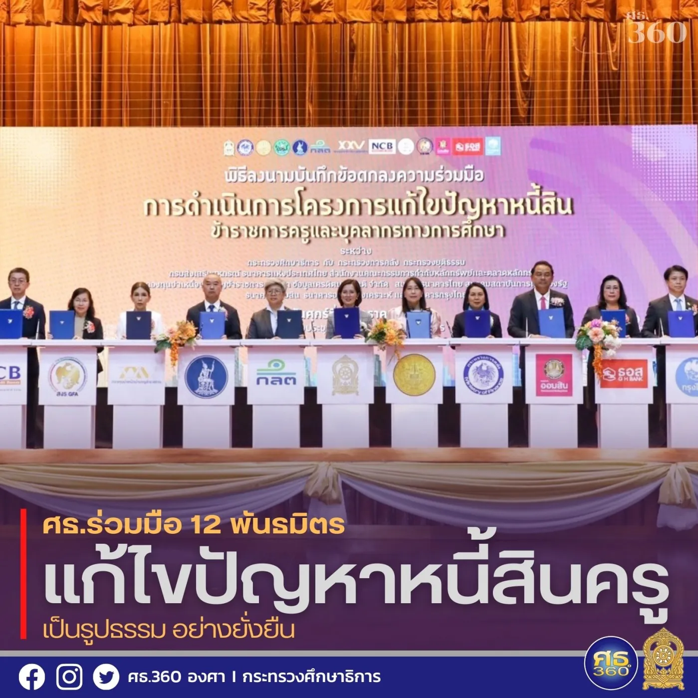รมว.ศธ. “ตรีนุช” นำ ศธ. ผนึกกำลัง 12 พันธมิตร ดึงจุดแข็งเข้าช่วยเหลือแก้ไขหนี้ครู พร้อมอบรมความรู้ ปลูกฝังวินัยการเงิน ให้สิทธิพิเศษต่างๆ ต่อยอดการแก้ไขปัญหาหนี้สินครูอย่างยั่งยืน