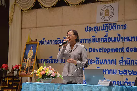 เมื่อวันที่ 21 สิงหาคม 2562 ดร.ดุริยา อมตวิวัฒน์ รองปลัดกระทรวงศึกษาธิการ เป็นประธานเปิดการประชุมและบรรยายพิเศษ ในการประชุมปฏิบัติการสร้างการรับรู้แนวทางการขับเคลื่อนเป้าหมายการพัฒนาที่ยั่งยืน (Sustainable Development Goals : SDGs) ด้านการศึกษาในระดับพื้นที่ ของสำนักงานศึกษาธิการภาค 3 ณ โรงแรมเวสเทิร์นแกรนด์ราชบุรี จังหวัดราชบุรี โดยมีวัตถุประสงค์เพื่อขับเคลื่อนและสร้างการรับรู้เกี่ยวกับสาระสำคัญเป้าหมายของสหประชาชาติว่าด้วยการพัฒนาที่ยั่งยืน เป้าหมายที่ 4 การศึกษาที่มีคุณภาพและโอกาสในการเรียนรู้ตลอดชีวิต ในระดับพื้นที่