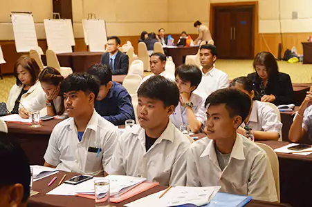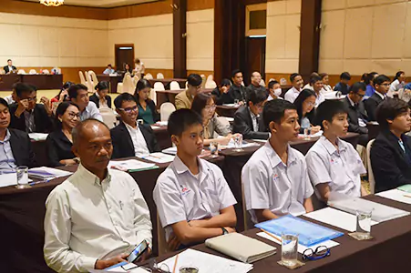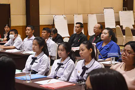 ผู้เข้าร่วมการประชุมฯ ประกอบด้วย ผู้แทนจากหน่วยงานในพื้นที่จังหวัดกาญจนบุรี จังหวัดราชบุรี และจังหวัดสุพรรณบุรี ได้แก่ ศธจ. สพป. สพม. อาชีวศึกษา กศน. สช. สำนักงานสาธารณสุขจังหวัด สำนักงานพัฒนาสังคมและความมั่นคงของมนุษย์จังหวัด สำนักงานแรงงานจังหวัด องค์กรปกครองส่วนท้องถิ่น สถานศึกษา ครู/คณาจารย์ นักเรียนและนักศึกษา รวมกว่า 100 คน ทีมวิทยากรจากโครงการประสานงานการวิจัยเพื่อสนับสนุนการพัฒนาที่ยั่งยืน SDG MOVE