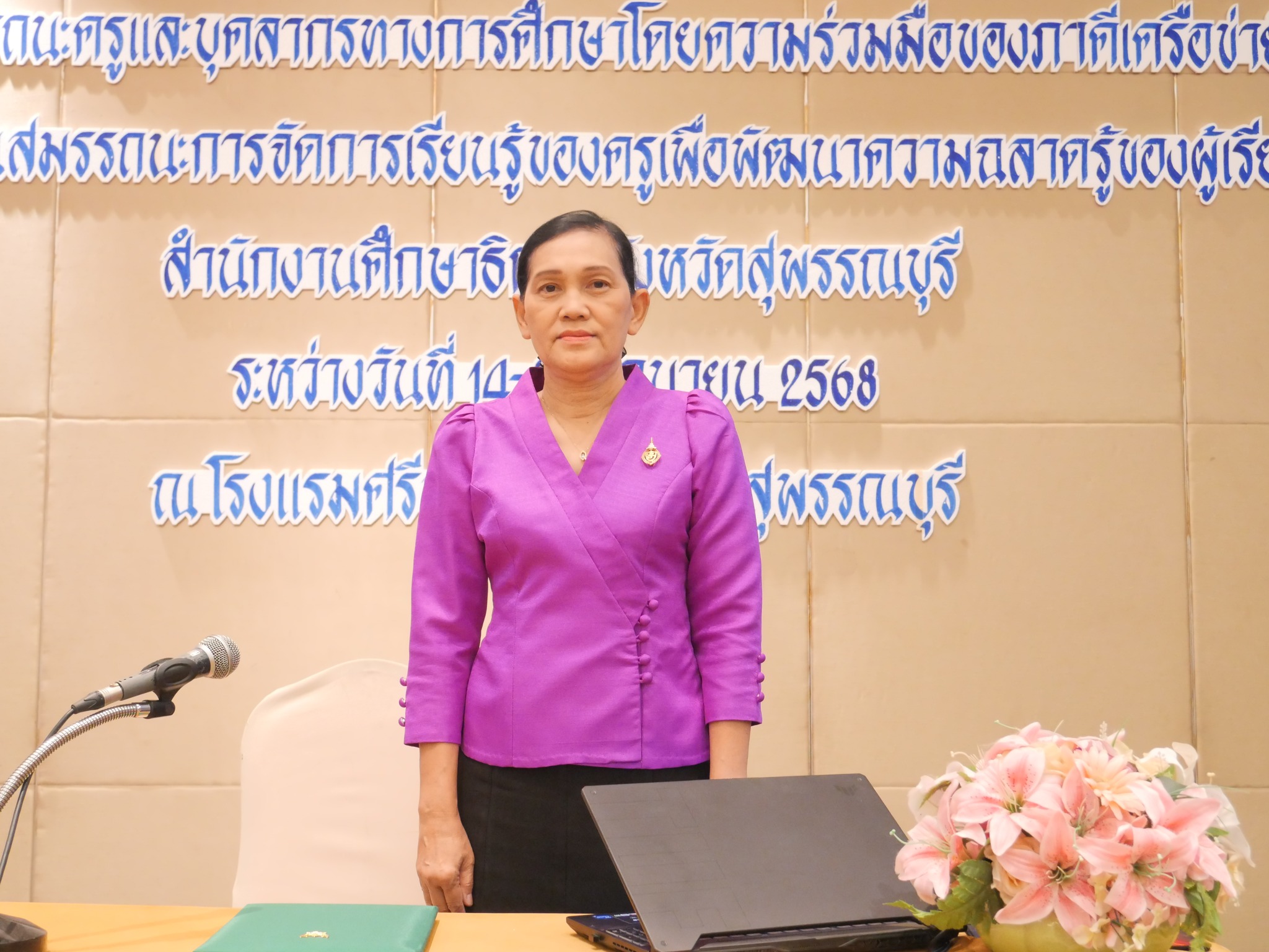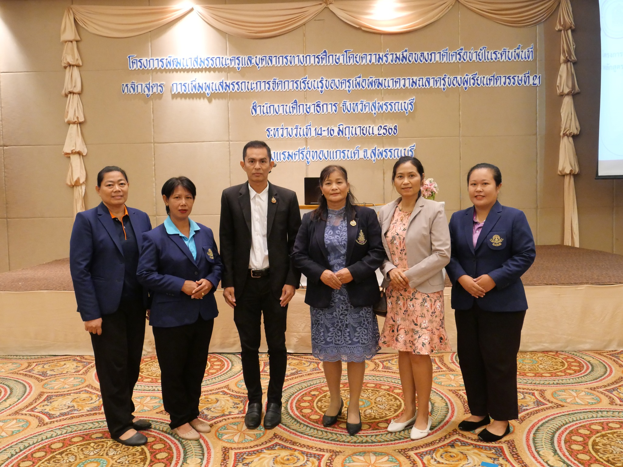 วันที่ 14 มิถุนายน 2568 นางสำเนา พงษ์อารีย์ ศึกษาธิการจังหวัดสุพรรณบุรี เป็นประธานการอบรมพัฒนาสมรรถนะครูและบุคลากรทางการศึกษาโดยความร่วมมือของภาคีเครือข่ายในระดับพื้นที่ หลักสูตร การเพิ่มพูนสมรรถนะการจัดการเรียนรู้ของครูเพื่อพัฒนาความฉลาดรู้ของผู้เรียนศตวรรษที่ 21 โดยนายพัฒนา แจ่มเหมือน รองศึกษาธิการจังหวัดสุพรรณบุรี เป็นผู้กล่าวรายงาน มีผู้เข้ารับการพัฒนาฯ จำนวน 90 คน แบ่งเป็น 3 ด้าน ด้านการอ่าน คณิตศาสตร์ และวิทยาศาสตร์ ณ โรงแรมศรีอู่ทองแกรนด์ อำเภอเมืองสุพรรณบุรี จังหวัดสุพรรณบุรี