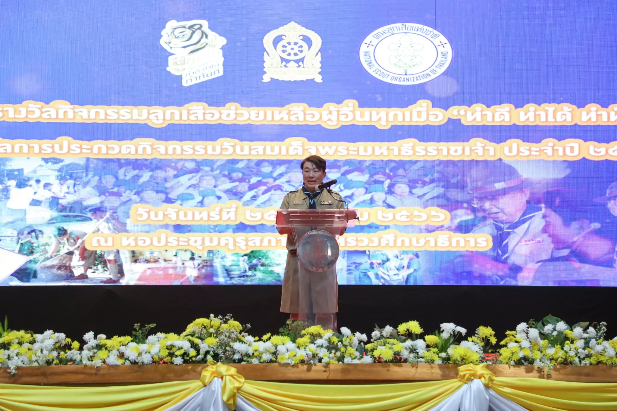 ปลัด ศธ. กล่าวว่า การจัดพิธีมอบรางวัลในครั้งนี้ เพื่อเป็นเกียรติ และสร้างขวัญกำลังใจให้แก่ลูกเสือ เนตรนารี บุคลากรทางการลูกเสือ และหน่วยงาน ที่ร่วมกิจกรรมลูกเสือช่วยเหลือผู้อื่นทุกเมื่อ “ทำดี ทำได้ ทำทันที” โดยการบำเพ็ญประโยชน์ในสถานที่ต่าง ๆ ตามคำปฏิญาณของลูกเสือ ระหว่างวันที่ 25 พฤศจิกายน – 1 ธันวาคม 2566 ซึ่งได้จัดกิจกรรมออนไลน์โดยให้ผู้เข้าร่วมโพสต์ภาพหรือคลิปวิดีโอสั้นๆ ผ่าน FACEBOOK : THAI SCOUT “ลูกเสือช่วยเหลือผู้อื่นทุกเมื่อ” ทำดี ทำได้ ทำทันที และ TIKTOK : thai_scout โดยมีรางวัลสำหรับบุคคล หน่วยงาน หรือสถานศึกษา ที่โพสต์ภาพหรือคลิปวิดีโอที่มียอด Like View และ Share สูงที่สุด